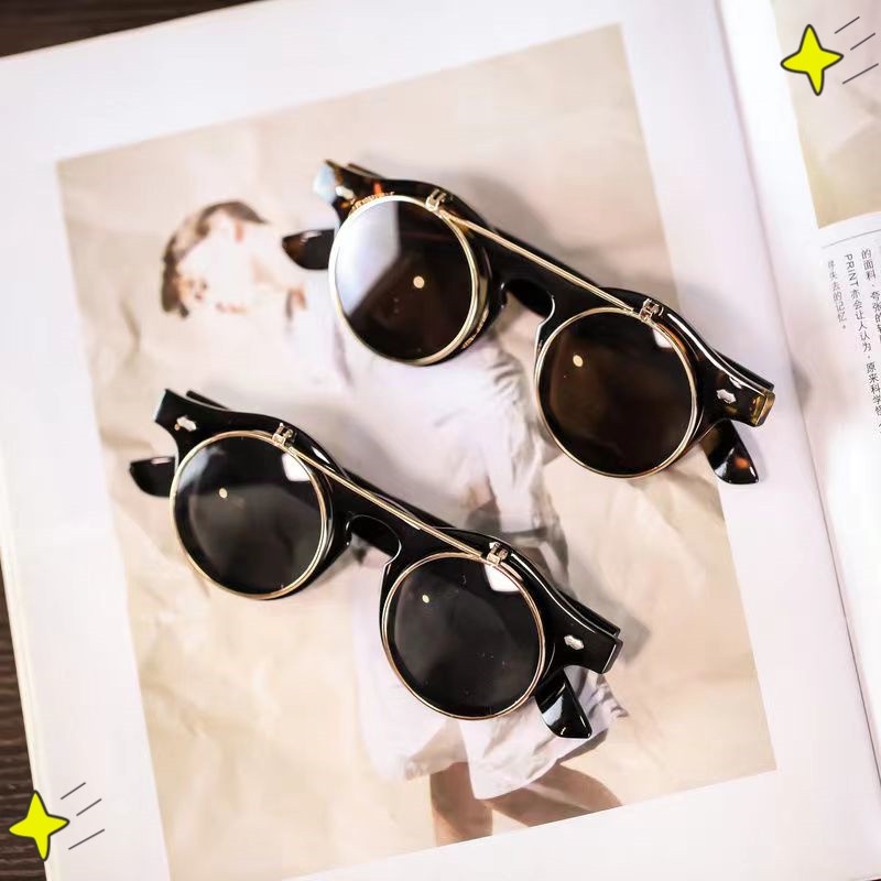 Sunglasses Spec Mata Spek Mata Punk Flip Double Layer Retro Personaliti Kacamata Hitam Logam Bingkai Bulat Kecil Lelaki Dan Wanita Batu Hitam Cermin Mata Kecil Shopee Malaysia